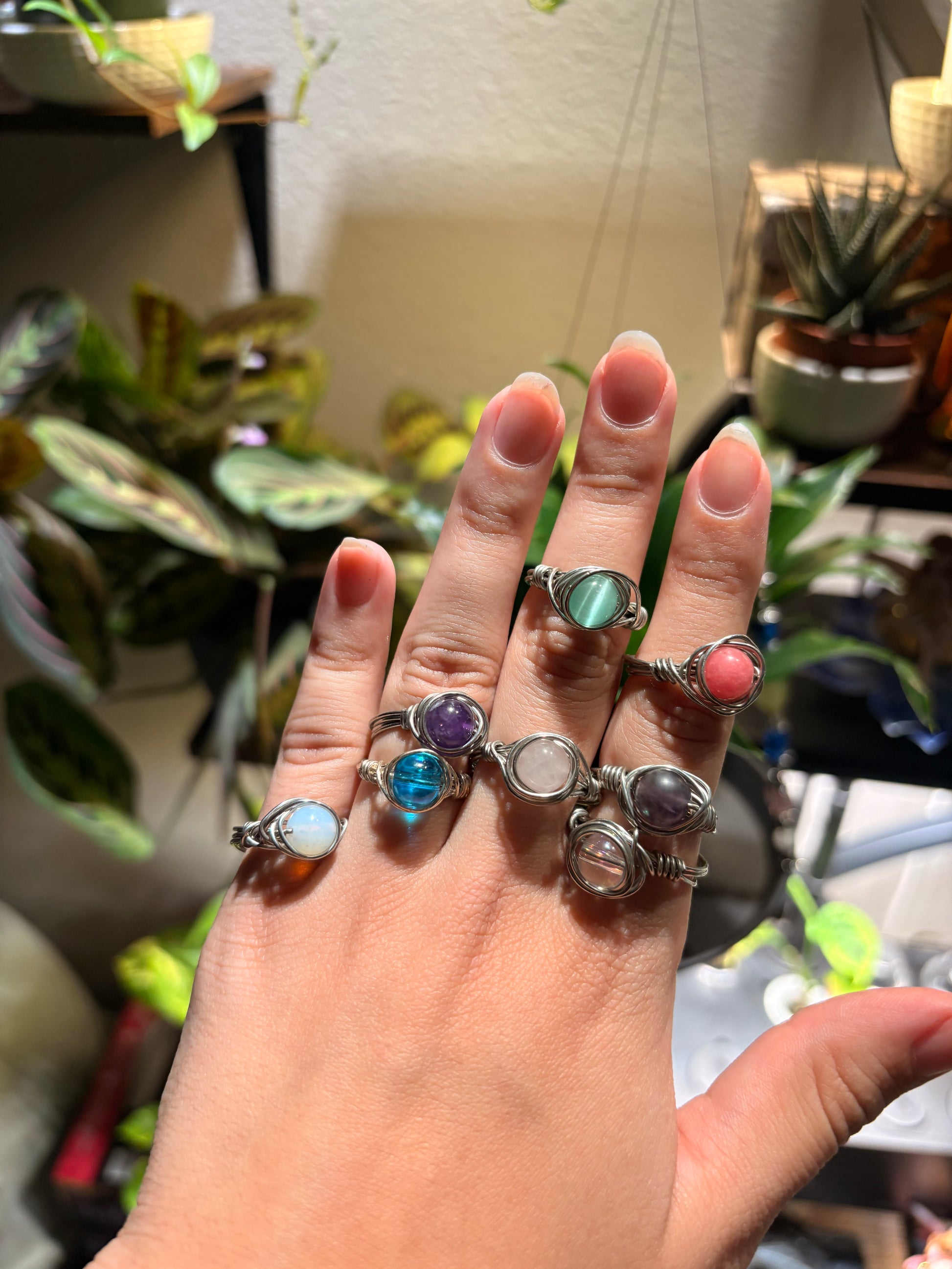 Handmade wire ring with many different variants. For any occasion <3 Hand crafted with silver plated metal.