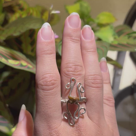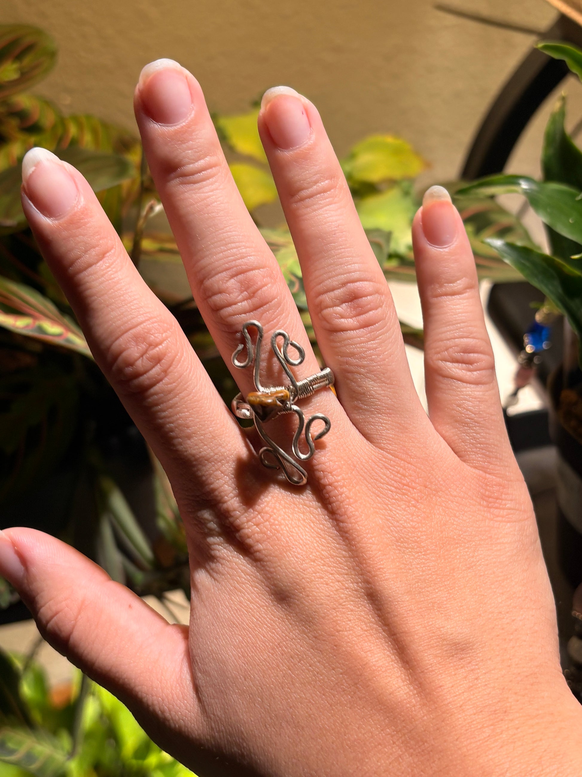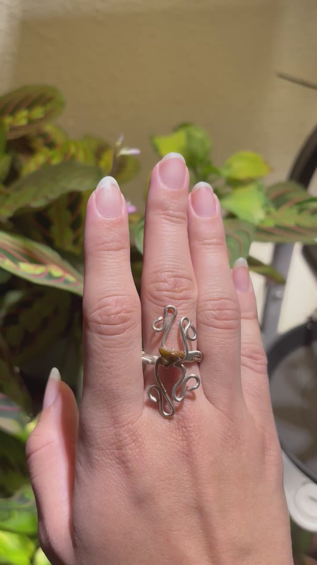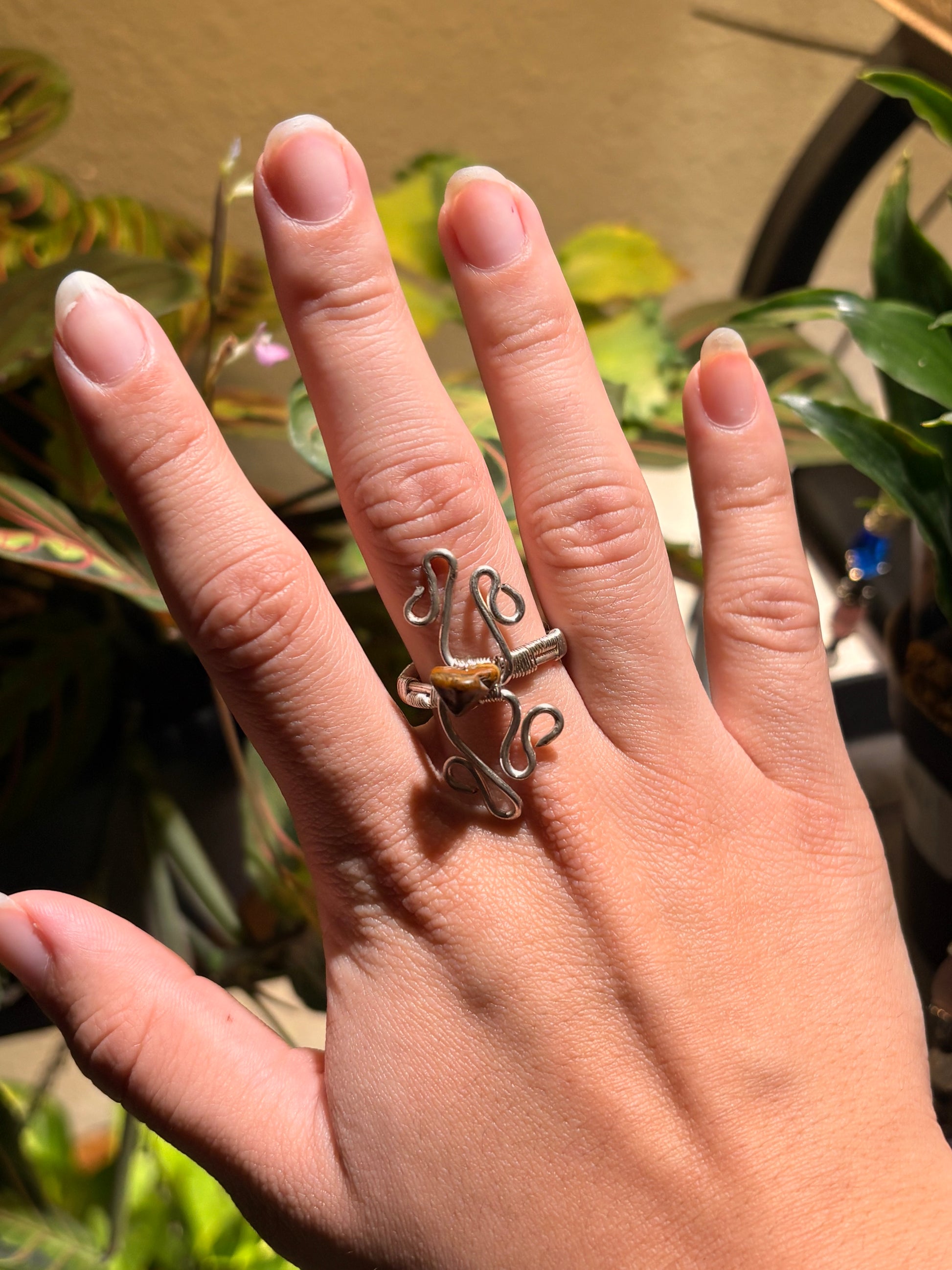 Cute statement piece ring to catch the curious eye. Made with silver plated wire and your choice of stone.